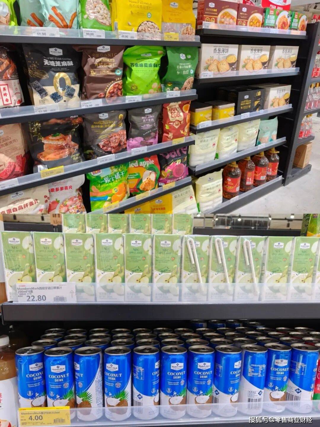 另一个值得注意的细节是,欢乐爱家店内还有专门的货架来陈列山姆MM商品,这些经过山姆代购商所引进的MM自营商品多为零食饮料品类,包括地瓜棒、板栗仁、花生仁和椰子饮料等。