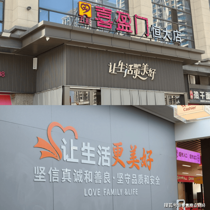 图:上为喜盈门超市,下为欢乐爱家惠选