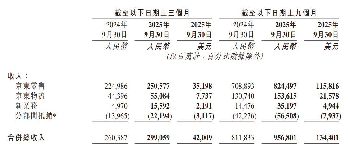 但需警惕“低基数效应”的影响 :2024年第三季度京东的新业务收入仅49.7亿元。2025年三季度同比增长213.7%后至155.92亿元。