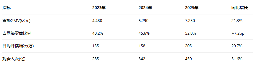 (2023-2025年直播电商核心指标对比)