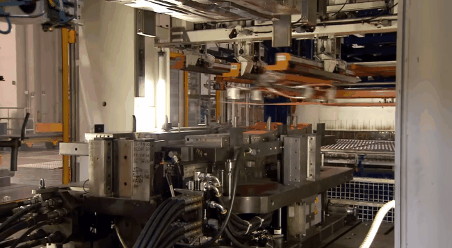 然后热冲压机咔嚓一下压出形状,并在短短几秒内降温 400-500℃ ,让钢材冷却成型。