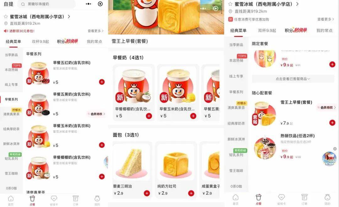 此外,2025年11月,在蜜雪冰城的部分门店点单界面,还新增了“早餐系列”,已上架“早餐系列”包括五红奶、五黑奶、玉米奶、椰椰奶等,均售价5元。据悉,目前“早餐计划”仅在大连、西安、南宁、杭州等城市进行部分试新。