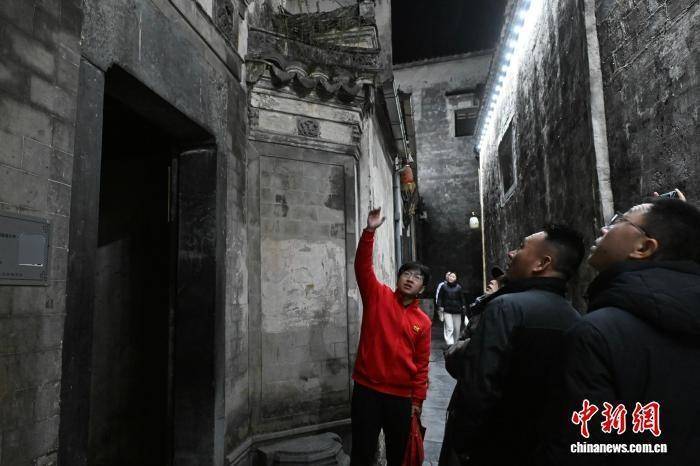 11月18日,海外华文媒体在黟县西递镇西递村观赏中国首个以徽派古村落为主体的大型“行进式”水幕演艺光影秀。中新社记者韩苏原 摄