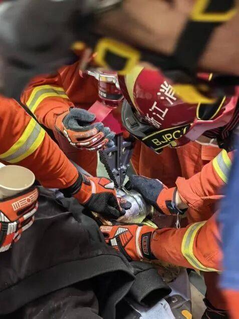 急诊医学科第一时间启动创伤多学科团队(MDT),为患者建立静脉通道、进行镇痛、止血、补液等预处理,并拟定后续手术方案。消防员则利用角磨机、液压扩张器等工具,对绞肉机外壳实施精准切割。操作过程中,他们必须确保切割平稳,避免震动与高温对患者造成二次伤害。