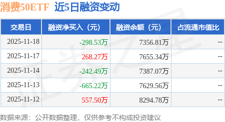 证券之星消息,11月18日,消费50ETF(515650)融资买入510.18万元,融资偿还808.71万元,融资净卖出298.53万元,融资余额7356.81万元。