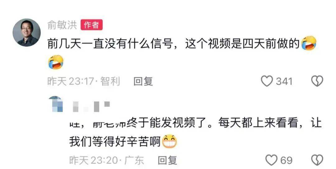 11月18日上午,俞敏洪在社交平台连发10条南极游视频。本人在评论区表示:前几天一直没有什么信号,这个视频是四天前做的。