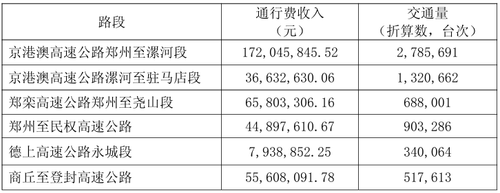 以上数据系河南省高速公路联网监控收费通信服务有限公司拆分数据,未经审计,自执行“营改增”政策后,该通行费收入中未含增值税。