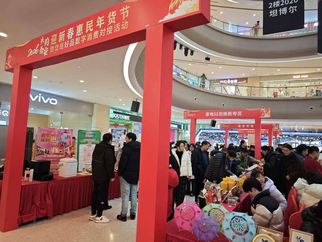 活动现场设置了八大展区,包括岱岳好品(岳来香)专区、“老字号”专区、“家电以旧换新”专区、“岱岳好品·支书推荐官”直播助农专区、“焕新岱岳”平台专区、外贸优品专区、岱岳好品数字消费对接专区、新能源汽车专区,全区88家重点企业携400余款特色名优产品汇聚一堂,吸引消费者驻足购买。现场既有支书直播助农的温馨场景,也有电商选品洽谈的务实环节,还提供家电、数码产品以旧换新的政策红利,生动呈现出多元、新颖的消费业态,为广大市民打造了一场“品年味、购好物、享实惠”的新春消费盛宴。