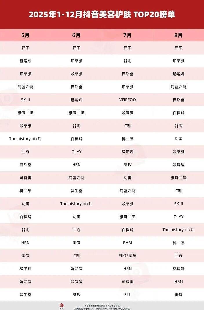 ·韩束稳坐钓鱼台,珀莱雅依旧紧随其后
