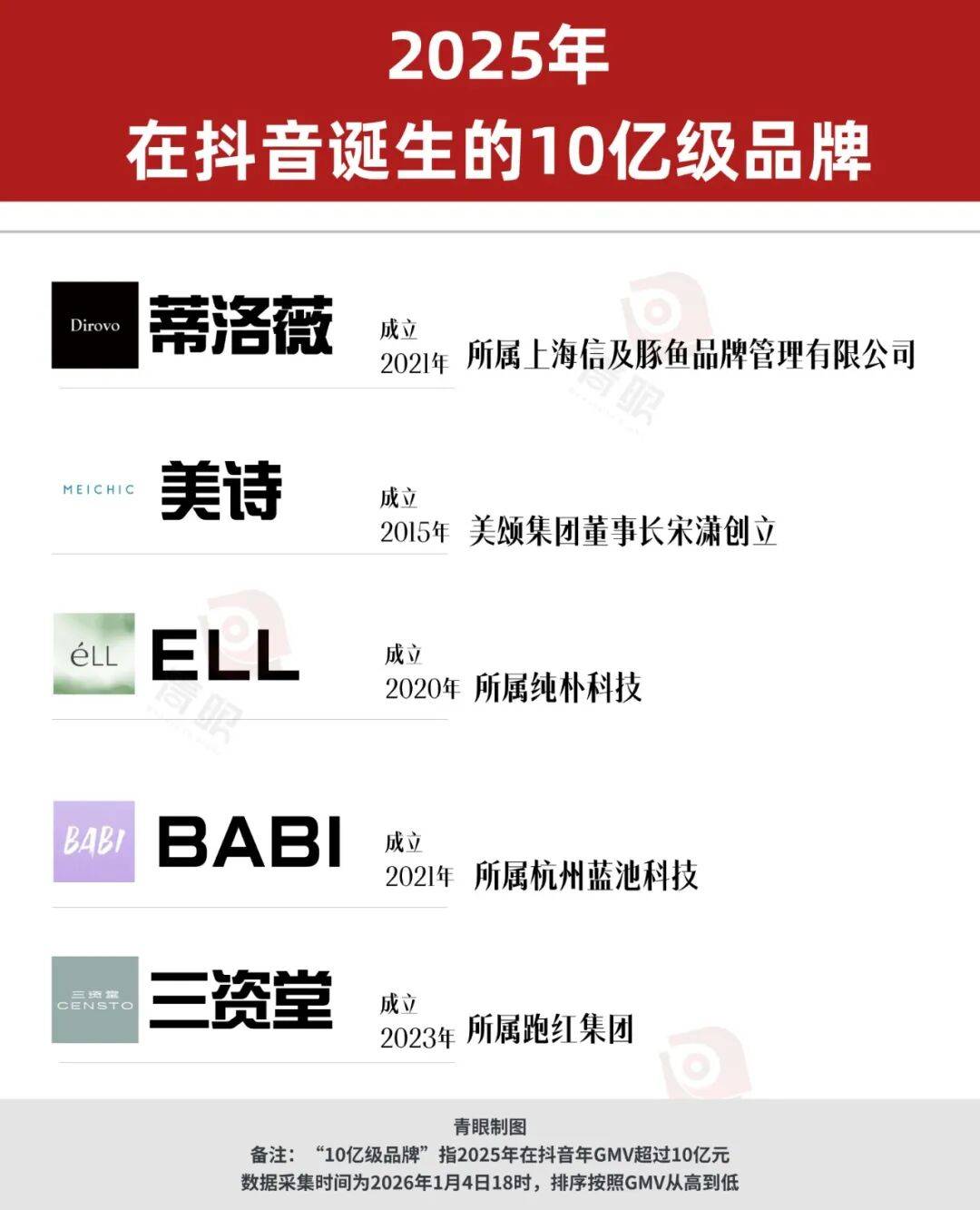 除上述品牌外,青眼注意到,还有一批品牌在2025年也实现了快速增长,包括造物者、丽菲欧、奕沃、修可芙、BUV、迪仕艾普、KAZOO和原生密码,这些品牌在抖音平台的年GMV均超7亿元,甚至如造物者已摸到了“10亿级”的门槛,若上述品牌在2026年依旧能保持住稳健的增势,抖音榜单的未来,或许真的会被改写。