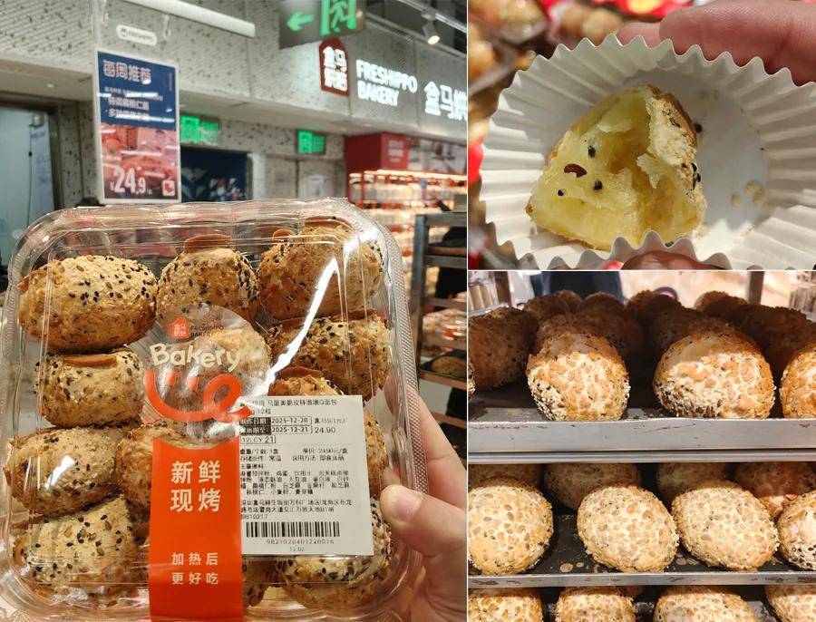 盒马架起炉子,春节档“现烤三剑客”接棒:马里奥脆皮胖墩墩Q面包、生巧流心千层手撕包、安心真蛋奶花边蛋挞。