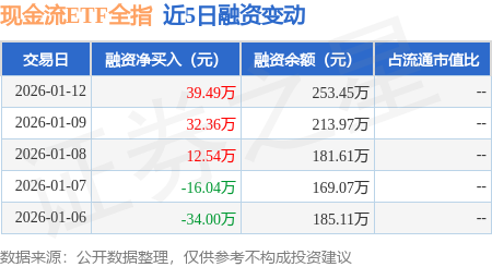 证券之星消息,1月12日,现金流ETF全指(563390)融资买入73.83万元,融资偿还34.35万元,融资净买入39.49万元,融资余额253.45万元,近3个交易日已连续净买入累计84.38万元。