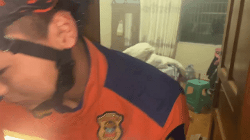 消防员与民警协力将跳楼者