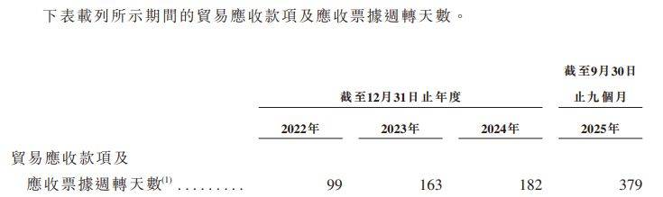 还值得注意的是,极视角报告期内的贸易应收款项及应收票据总额快速攀升,由2022年底的4201.5万元增至2025年三季度末的1.81亿元。同时,贸易应收款项及应收票据周转天数也显著恶化,由2022年的99天、2023年的163天、2024年的182天,大幅延长至2025年前三季度的379天。这表明公司回款速度变慢,坏账风险增加。