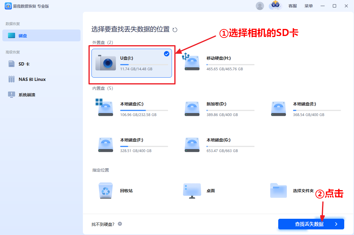 修复完成后,若内存卡能正常识别,直接使用易我数据恢复软件扫描恢复;若仍无法识别,可尝试在“磁盘管理”中为内存卡分配新盘符后再扫描。