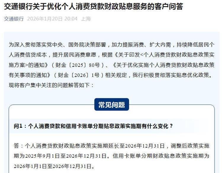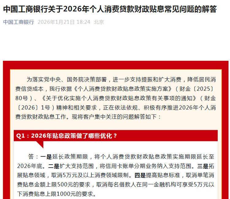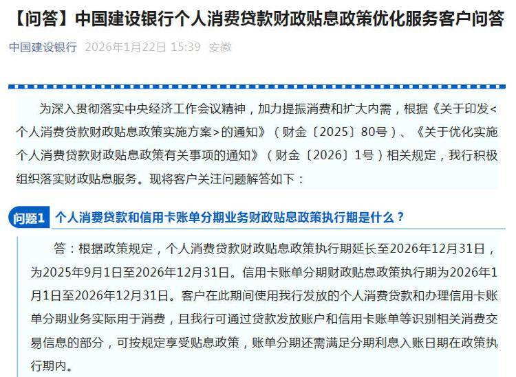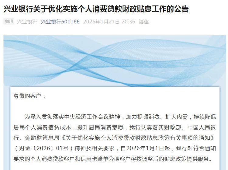 中新经纬1月22日电 落实个人消费贷款最新财政贴息政策,已有工商银行、建设银行、中国银行、农业银行、邮储银行、交通银行、招商银行、兴业银行等发布相关公告或进行答疑。