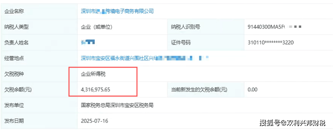 近期,深圳市某跨境电子商务企业因企业所得税历史合规漏洞,被税务部门追缴税款431万余元。