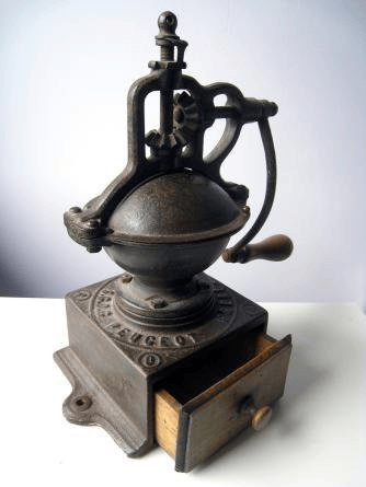1840推出咖啡研磨机(Peugeot Frères Coffee Grinder)如图3所示,采用创新的研磨工艺,能精细研磨咖啡豆以提取其香气。材料上,第一次采用了Hérimoncourt钢材与来自Belchamp的木材的结合。设计上,圆顶可打开的铁质机身、旋转用的曲柄和用于收集咖啡粉的木质底座组合成一个“机械的建筑体”:下部厚重、上部轻盈、中心突出,避免过度装饰。制造上,模块化组件各种尺寸提高生产速度和质量;标准化研磨颗粒度满足不同用户对于提取咖啡豆最佳风味和香气的冲泡需求。在1840年实现年产销量达到了40万件,成为工业奇迹与网红产品,而当年确立的咖啡研磨机基本设计逻辑在今天仍然被复用。
