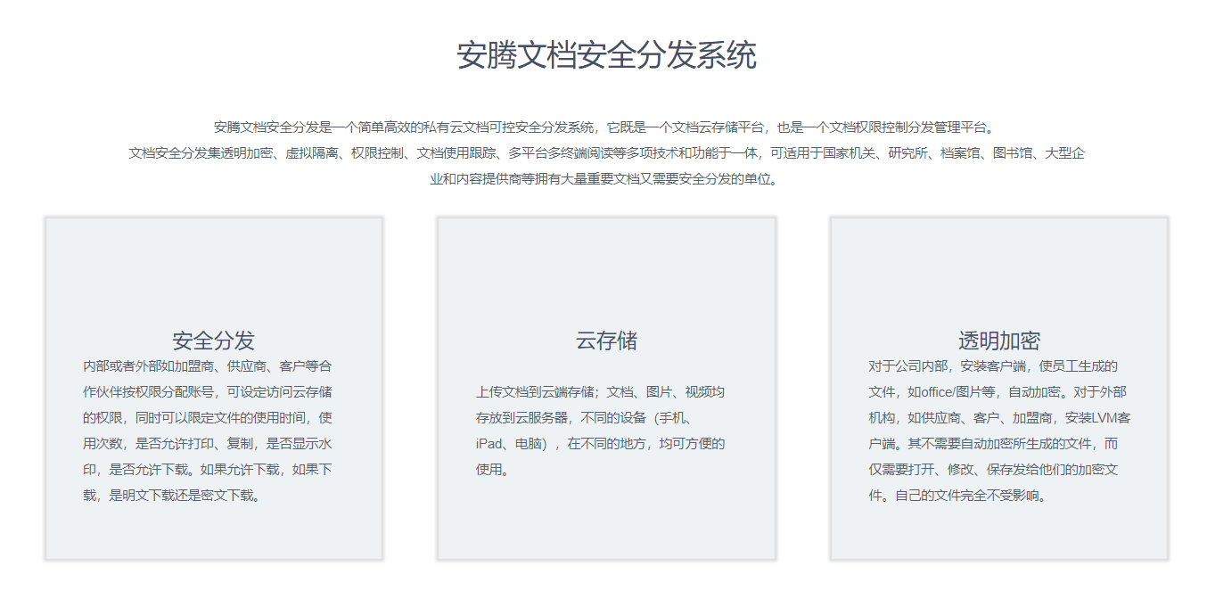 安腾软件的产品特点鲜明。以凤凰卫士为例,它集身份认证与权限管理、U盘管控、打印控制、程序控制、日志监控、自动备份、外发文件控制等多功能模块于一体。在身份认证与权限管理方面,能根据不同组织机构用户的实际需求,为不同部门、不同人员设置精准的操作权限,如针对各个部门安全级别的不同进行各类不一样的文件浏览权限(如打印、只读以及使用时间)的控制。在USB管控上,U盘插上电脑,拷出拷入各有四种模式:禁止、允许、加密、解密,企业可以灵活选择适合自身的模式,一般企业会使用允许拷入、禁止拷出的模式,有效防止内部数据通过U盘外泄。在打印控制上,能对打印行为进行严格管控,防止通过打印方式泄密。日志监控则可以记录所有的操作行为,为事后的审计和追溯提供有力支持。自动备份功能可以针对指定的文档类型进行版本备份,备份内容全部保存到FTP里面,能有效防止员工恶意删除损坏文件。外发文件控制方面优势显著,包含一个身份认证机制,可以根据客户或合作伙伴阅读对象的不同,设置不同的认证方式,如口令、绑定机器码、U盘绑定等;还能根据外发文件重要性不同,设置不同操作权限,如只读、禁止另存、浏览次数、使用时间、禁止打印、禁止拷屏和设置自动销毁等权限,防止二次泄密。