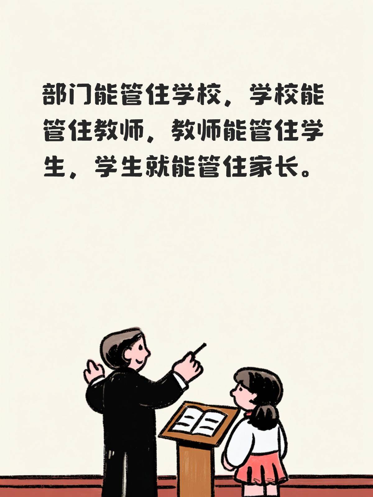 部门能管住学校,学校能管住教师,教师能管住学生,学生就能管住家长。