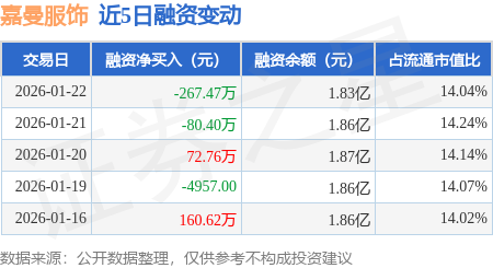 证券之星消息,1月22日,嘉曼服饰(301276)融资买入1191.51万元,融资偿还1458.98万元,融资净卖出267.47万元,融资余额1.83亿元,近20个交易日中有13个交易日出现融资净买入。