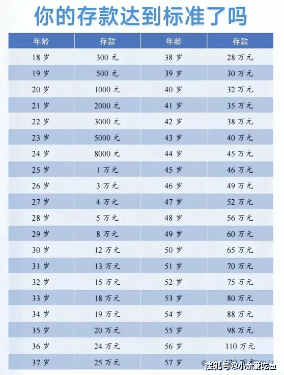 前几天在网上看到一张图表,对应的就是多大年纪应该有多少存款,分享给大家看一下。