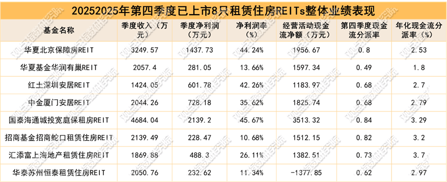 观点指数(GDIRI) 1月22日,已上市的8只租赁住房REITs同日披露了2025年第四季度报告。