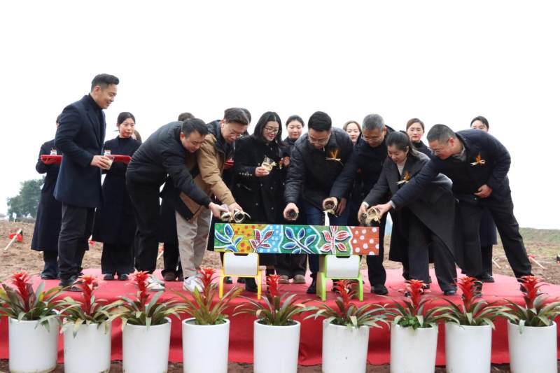 仪式现场,两江新区龙兴公司总经理胡天才等多位领导嘉宾上台剪彩,胡天才宣布“小能人劳动教育实践基地”启动。随后,与会嘉宾共同完成了汇集五色土、播撒种子的环节。来自各方的泥土汇聚一堂,象征着育人力量的融合,也寓意着教育根基深植于科技与劳动融合的沃土。