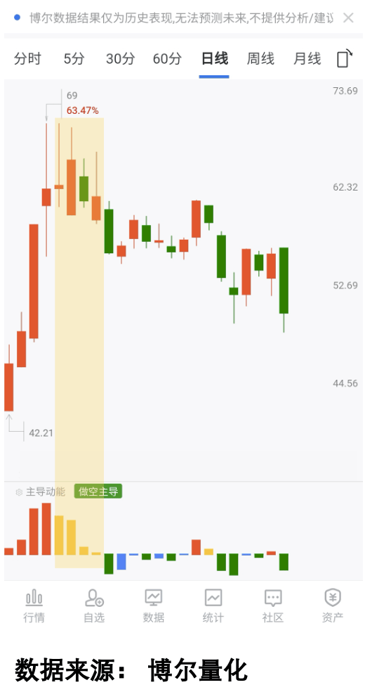 就像看图1里的例子,红柱子代表“做多主导”(大多数时候股价涨),黄柱子是“获利回吐”(做多的人开始卖)。黄色框里连续4天都是黄柱子,说明机构早就在偷偷卖了,可股价还装着“涨”的样子,等我们散户冲进去,之后就是绿柱子“做空主导”(大多数时候股价跌),一路往下调整。