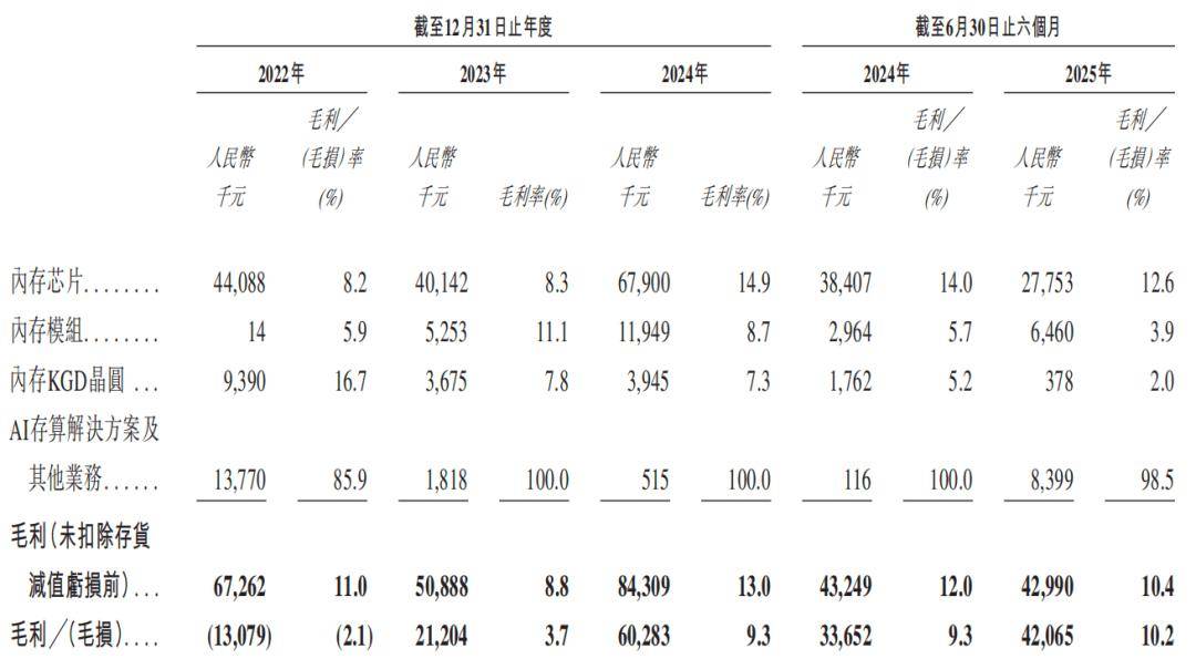 反观核心产品内存芯片的收入占比从88.2%逐年下降至70.2%,2025年上半年收入同比下滑20.11%,收入占比同比减少22.8个百分点,降至53.3%。