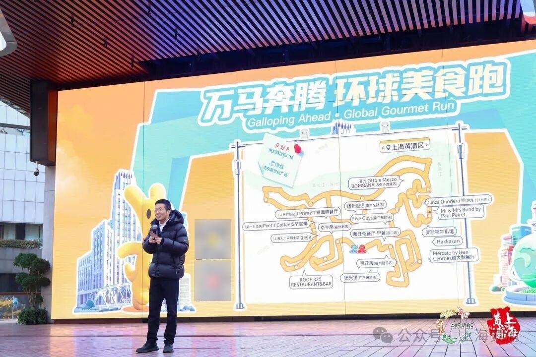 活动现场,“环球美食跑”线路图正式发布。该线路以网络热传的黄浦区“奔马”跑步路线(源自小红书用户“LE0的溜达”)为蓝本,串联区内多个特色商业与美食地标,形成一条独具魅力的城市漫游路径。