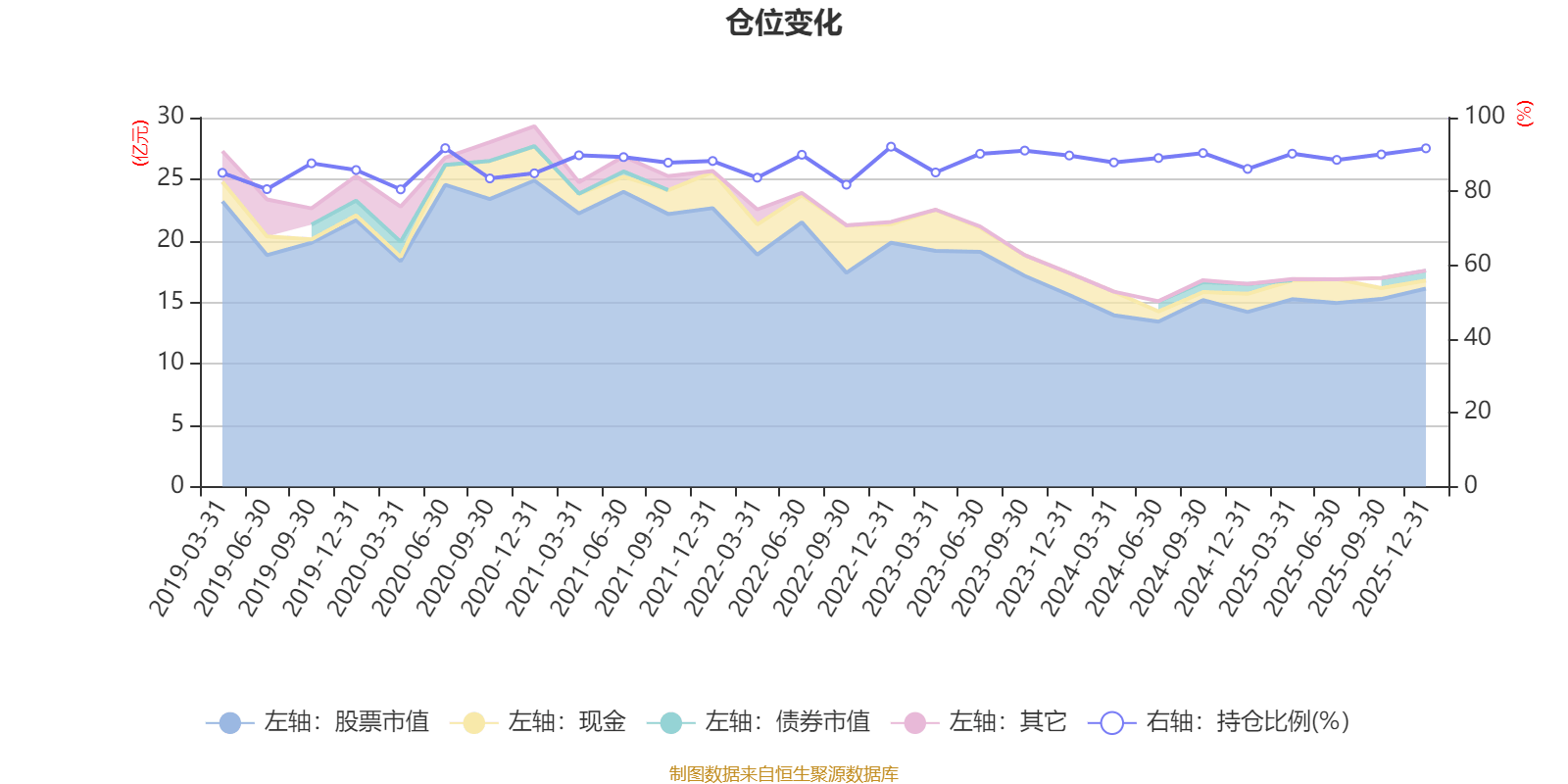 据定期报告数据统计,近三年平均股票仓位为89.16%,同类平均为87.64%。2022年末基金达到92.12%的最高仓位,2020年一季度末最低,为80.54%。