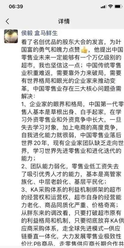 在盒马蹉跎多年的侯毅就对此深恶痛绝,并在第一时间点赞永辉调改:KA采购体系的利益机制,绑架超市的经营权和运营权。