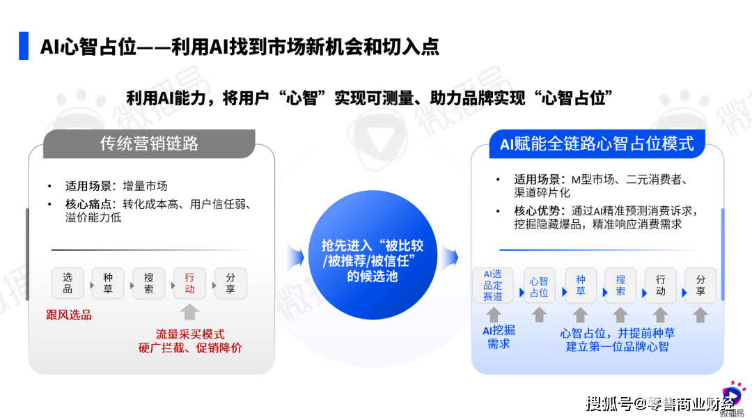 AI让心智变得可度量、可追踪、可优化:当心智可量化,营销才能从响应式走向预测式、从打扰式升级为服务式——在用户意图萌芽时提供“可信选择”,让品牌在竞争对手还没察觉时,就已完成了“被信任”的先发主权,从而提前建立品牌心智。