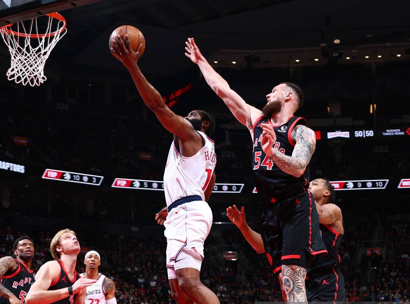 莱昂纳德因为脚踝受伤缺阵,但是快船在这一战仍然击败了实力不俗的猛龙。快船现在的士气和赛季初期完全不一样。这一战,祖巴茨得到16分14篮板,邓恩得到15分4篮板4助攻4抢断,乔丹·米勒得到19分2篮板6助攻4抢断,卡梅隆·克里斯蒂得到16分5篮板,科比·桑德斯得到13分3篮板3抢断。