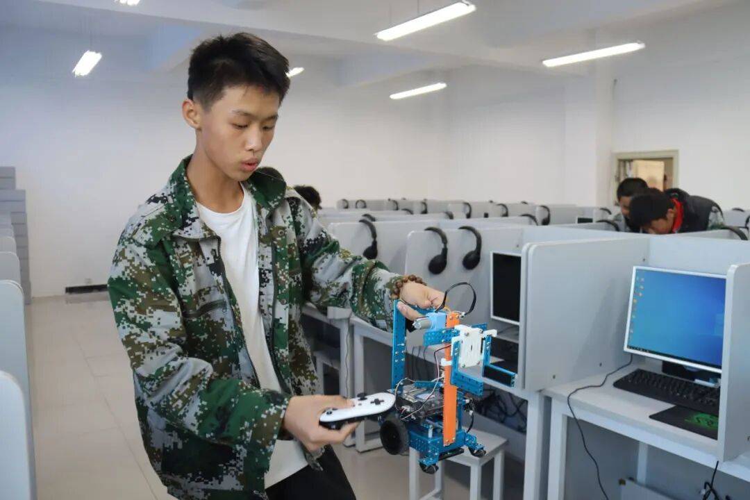 在学校新配备的计算机室,孩子们熟练地输入一行行代码,不断调整和优化发送给机器人的指令,并进一步反复调试,让机器人的动作达到预期效果。