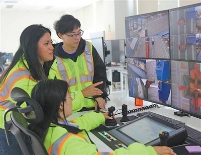 2025年10月7日,在秘鲁钱凯港,中远海运港口秘鲁钱凯公司中外员工进行作业监控。 玛丽安娜·巴索摄
