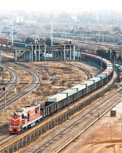 1月1日,一列装有汽车配件的火车从中哈(连云港)物流合作基地发往哈萨克斯坦。 王健民摄