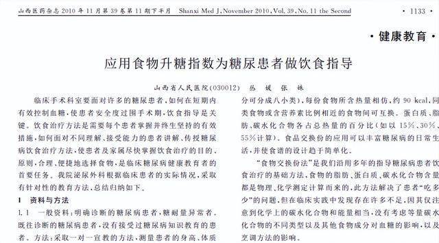 [1]丛媛.应用食物升糖指数为糖尿患者做饮食指导, 山西医药杂志(下半月刊) ,2010-11-25