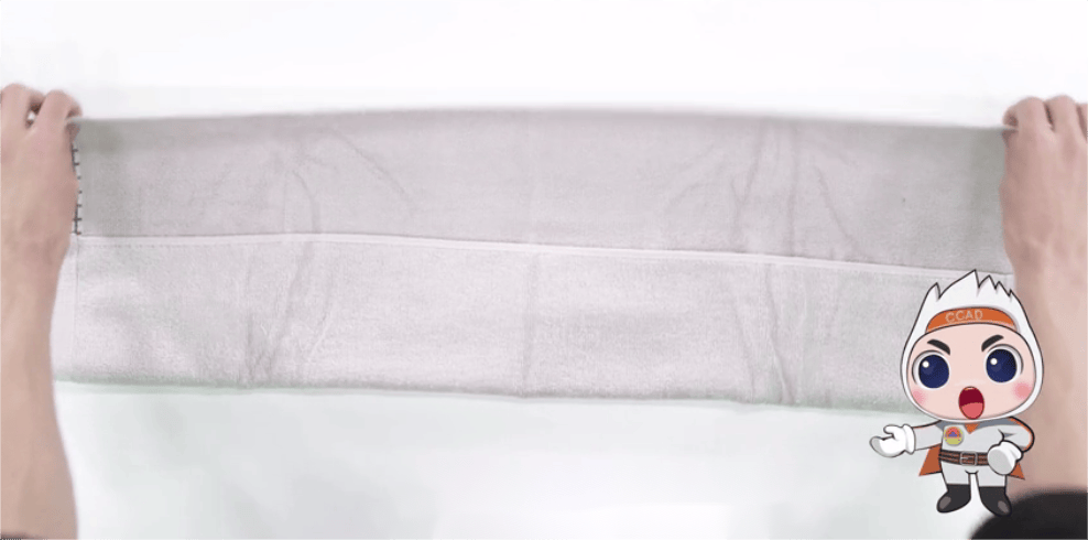 将带子塞入毛巾的2个折叠处,拉出来。
