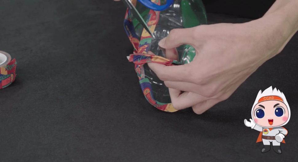用胶带粘好饮料瓶的毛边,防止割伤。