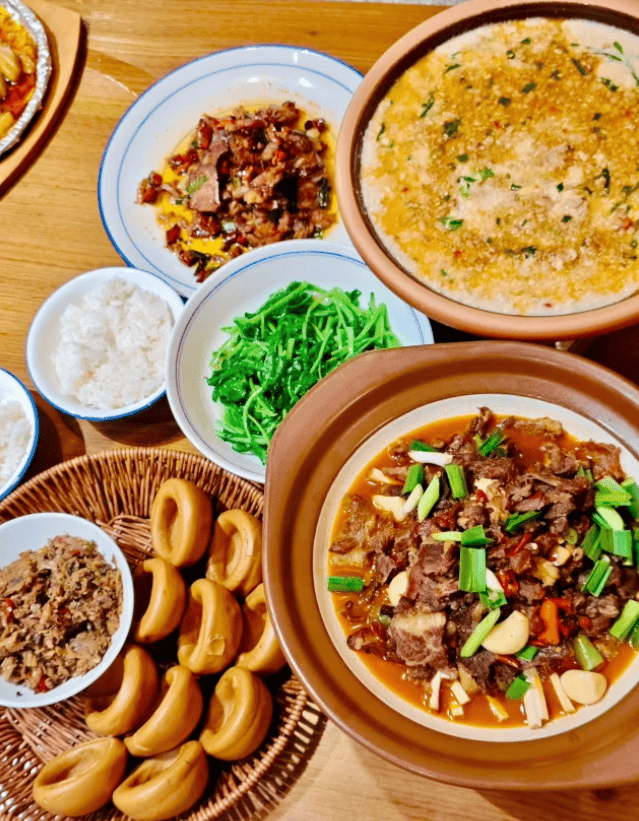 孩子的最爱是“土家红糖粑粑”。糯米团子在平底锅里煎得外皮酥脆焦香,内里软糯拉丝,再裹上浓郁的红糖汁和喷香的黄豆粉,甜而不腻,他一口气能吃好几个。我们还尝到了风味独特的“酸酢鱼”,用独特方法发酵后再烹饪,酸香开胃;以及看起来其貌不扬但味道很香的“血豆腐粑粑”,和一道清淡养胃的“合渣”(一种用黄豆磨浆后混合菜叶煮成的糊糊菜)。每一餐,小洁都会根据我们的口味和疲惫程度调整推荐,还会特意叮嘱店家调整辣度,这份细心,让我们的每一顿饭都吃得舒心又满足。