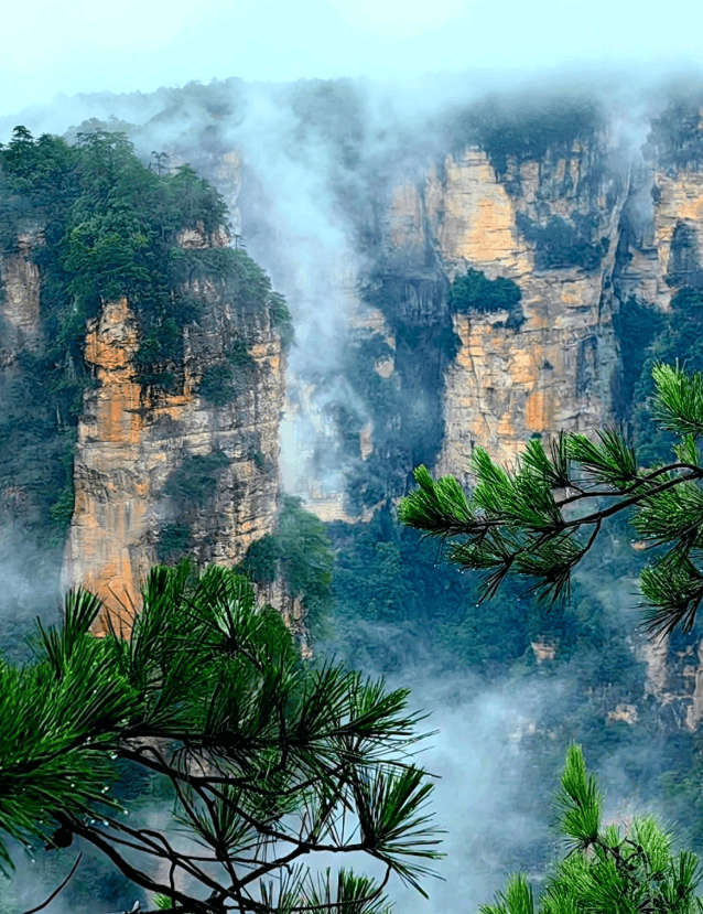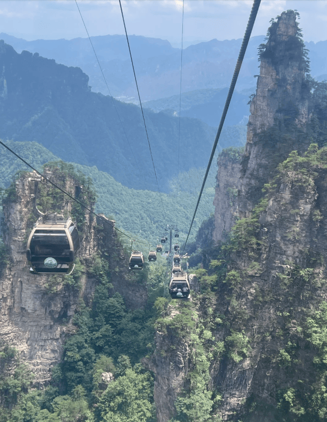 真正的游览从张家界国家森林公园开始。我们乘环保车直达黄石寨索道下站。小洁说,有“不上黄石寨,枉到张家界”的说法,乘缆车缓缓上升,视野逐渐开阔,脚下奇峰林立、绿树叠翠的景象,像是一个被突然打开的巨大的天然盆景,引得父母连连惊叹。下午我们深入袁家界,这里便是《阿凡达》中“哈利路亚山”的灵感来源地。站在迷魂台俯瞰,那些拔地而起、形态各异的石峰在云雾中若隐若现,确实有种摄人心魄的魔力。小洁总能找到人相对少一些的观景角度,让我们静静欣赏、拍照。随后去的杨家界,以峰墙奇观闻名,天然长城般的山体,展现了另一种雄浑的气度。