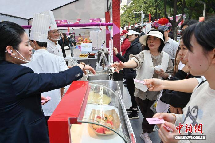 图为广式美食吸引游客购买。中新社记者 陈楚红 摄