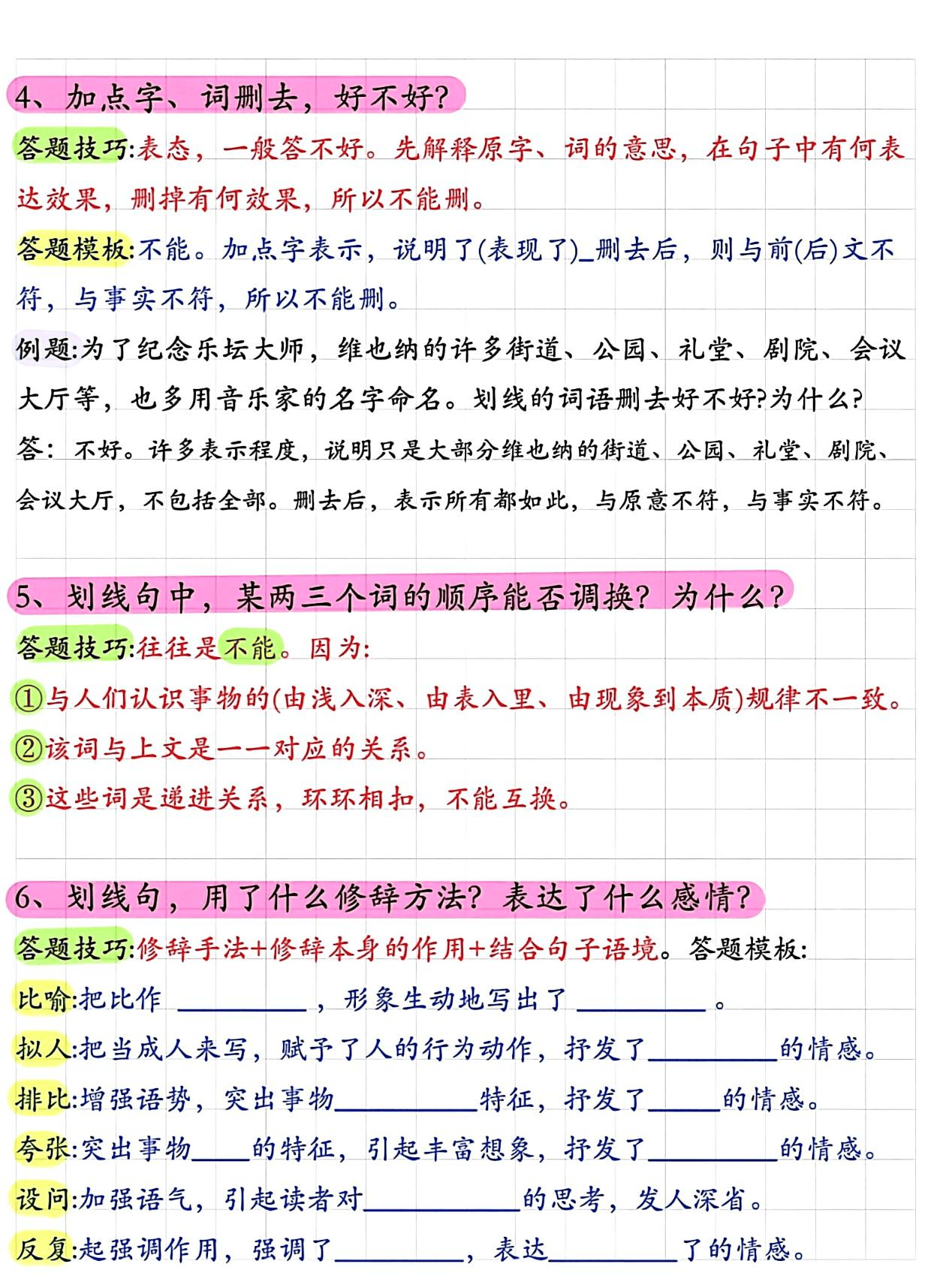 资料紧扣课本考点和考试大纲,把复杂的阅读理解拆解成可直接套用的答题模板。从审题技巧到组织语言,从分析文章脉络到踩分点提炼,每一步都讲得明明白白,小学生也能轻松理解。不管是写景、叙事还是说明文,都能快速找到解题突破口,避免答非所问、漏答踩分点的问题。