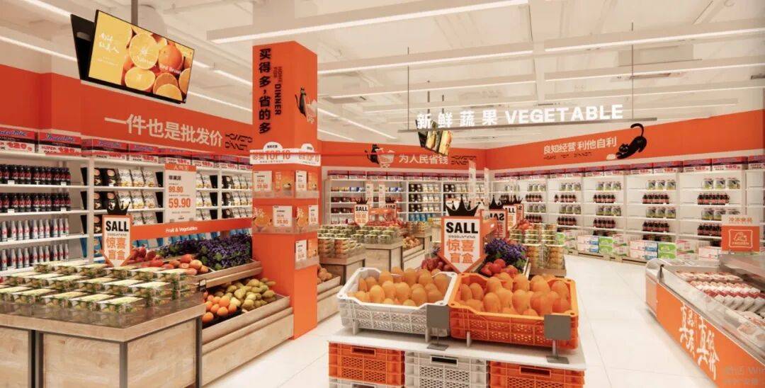 运营轻量化:纸箱陈列+“1店极少的人”配置,装修成本仅为传统超市1/5,人效提升2-3倍——用“运营向上”降低成本,反哺“价格亲民”的向上价值。