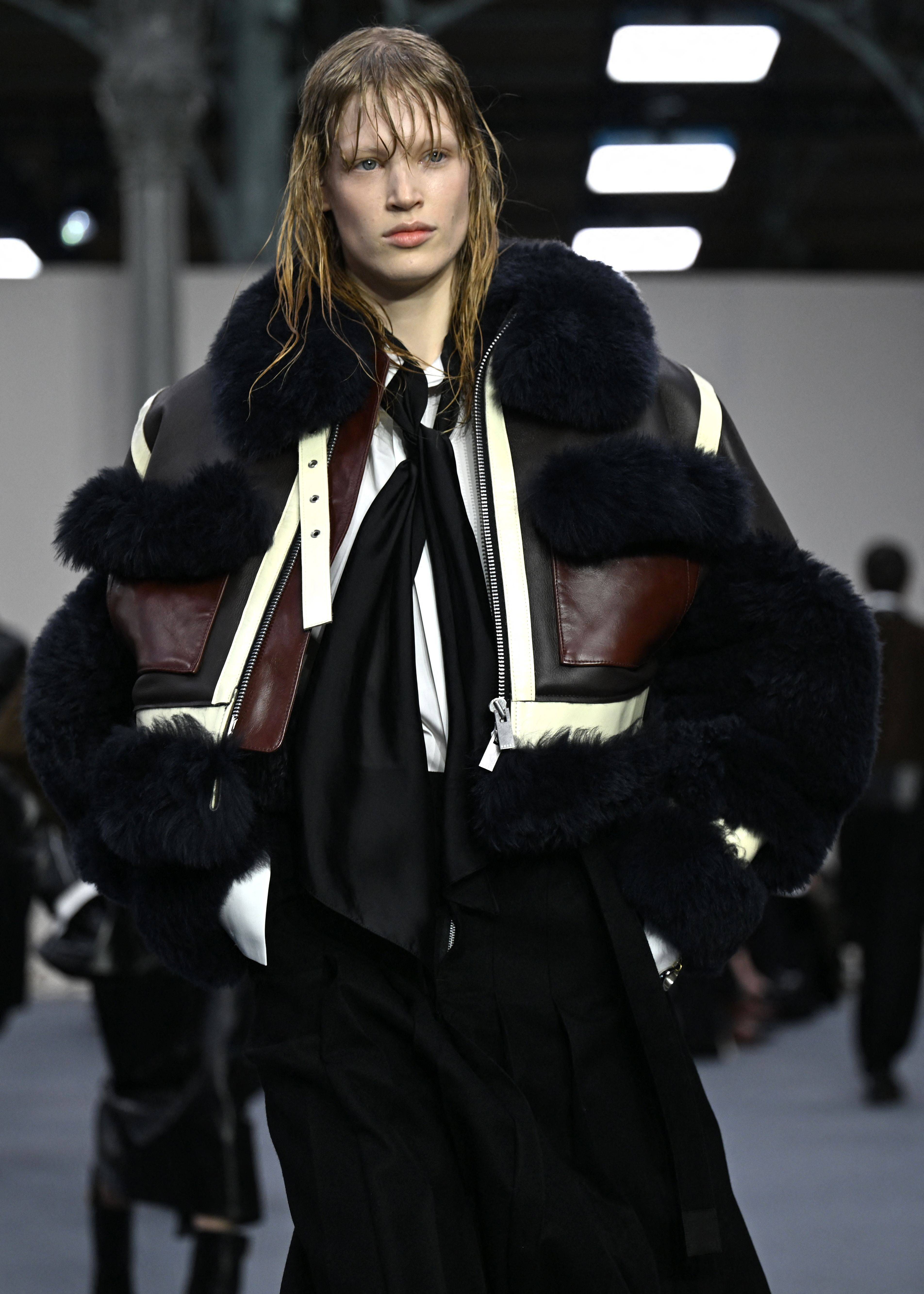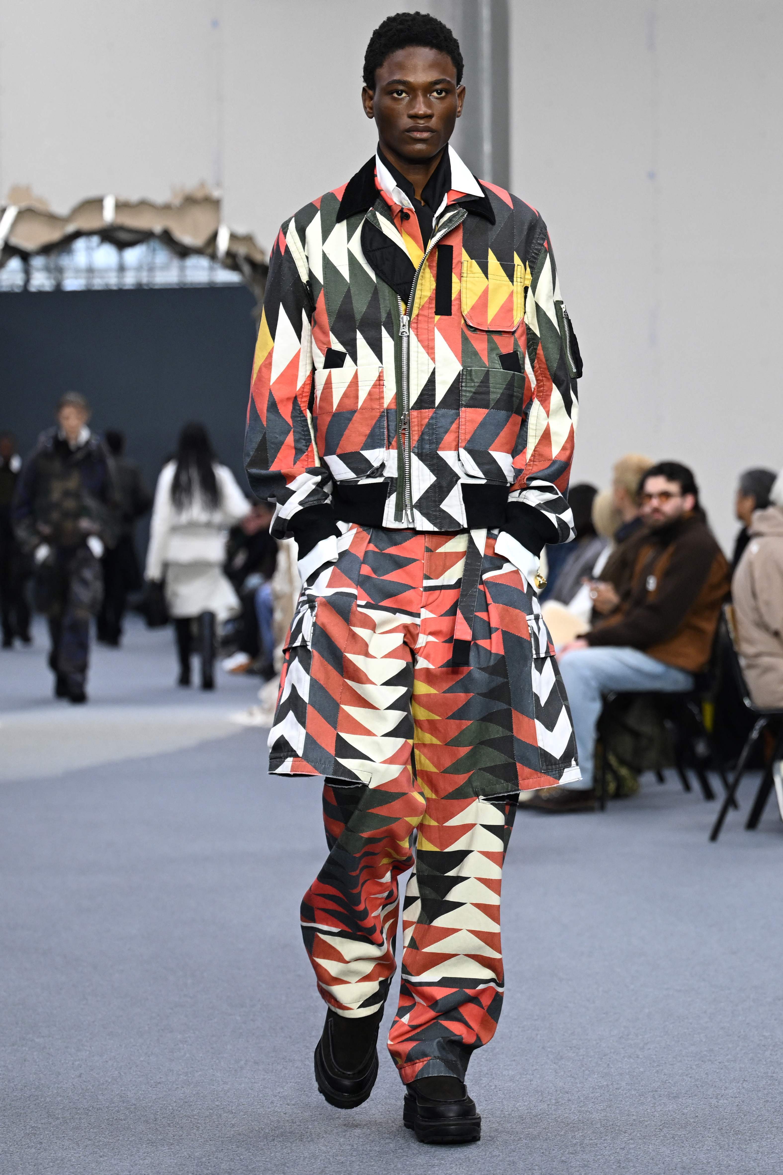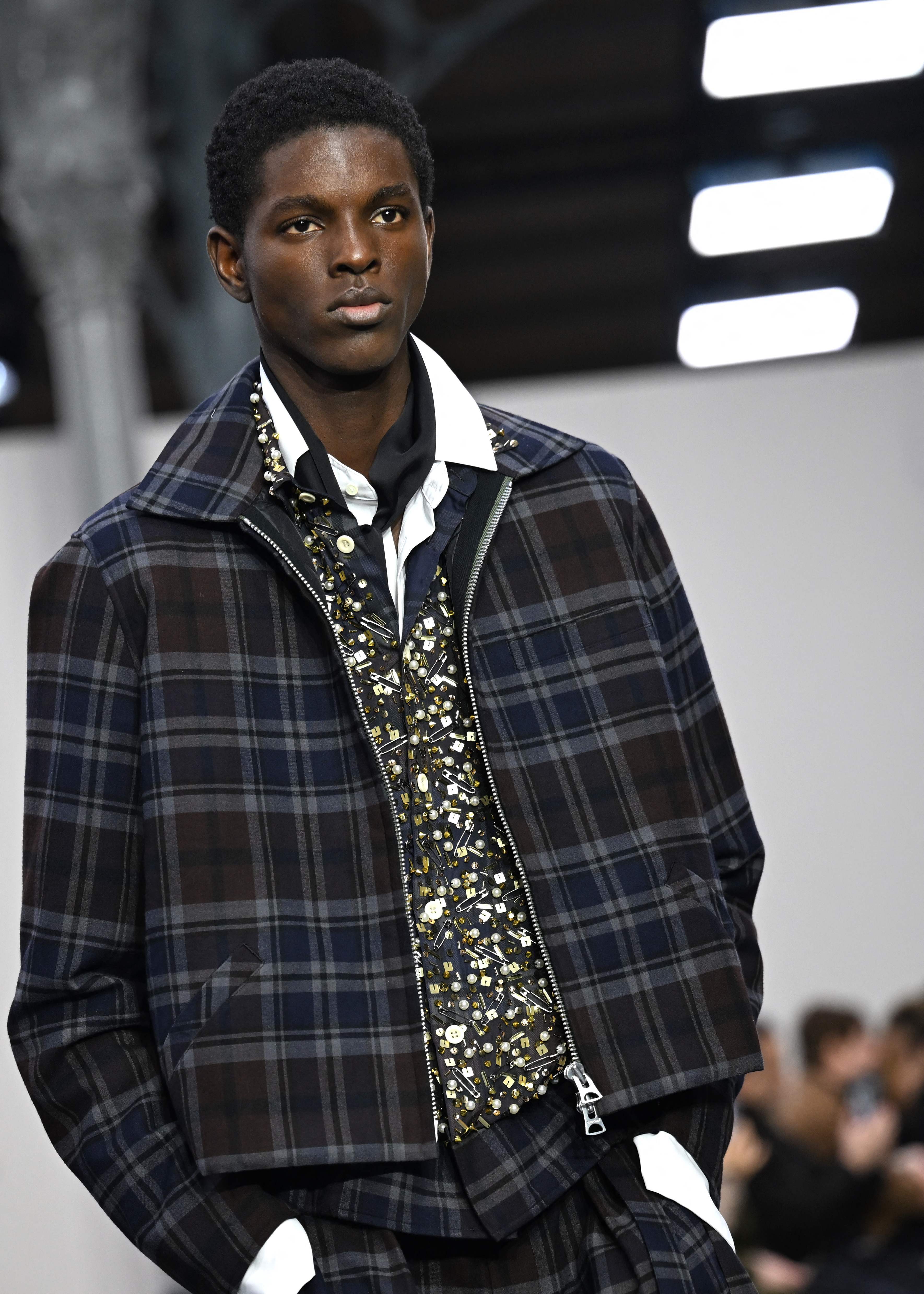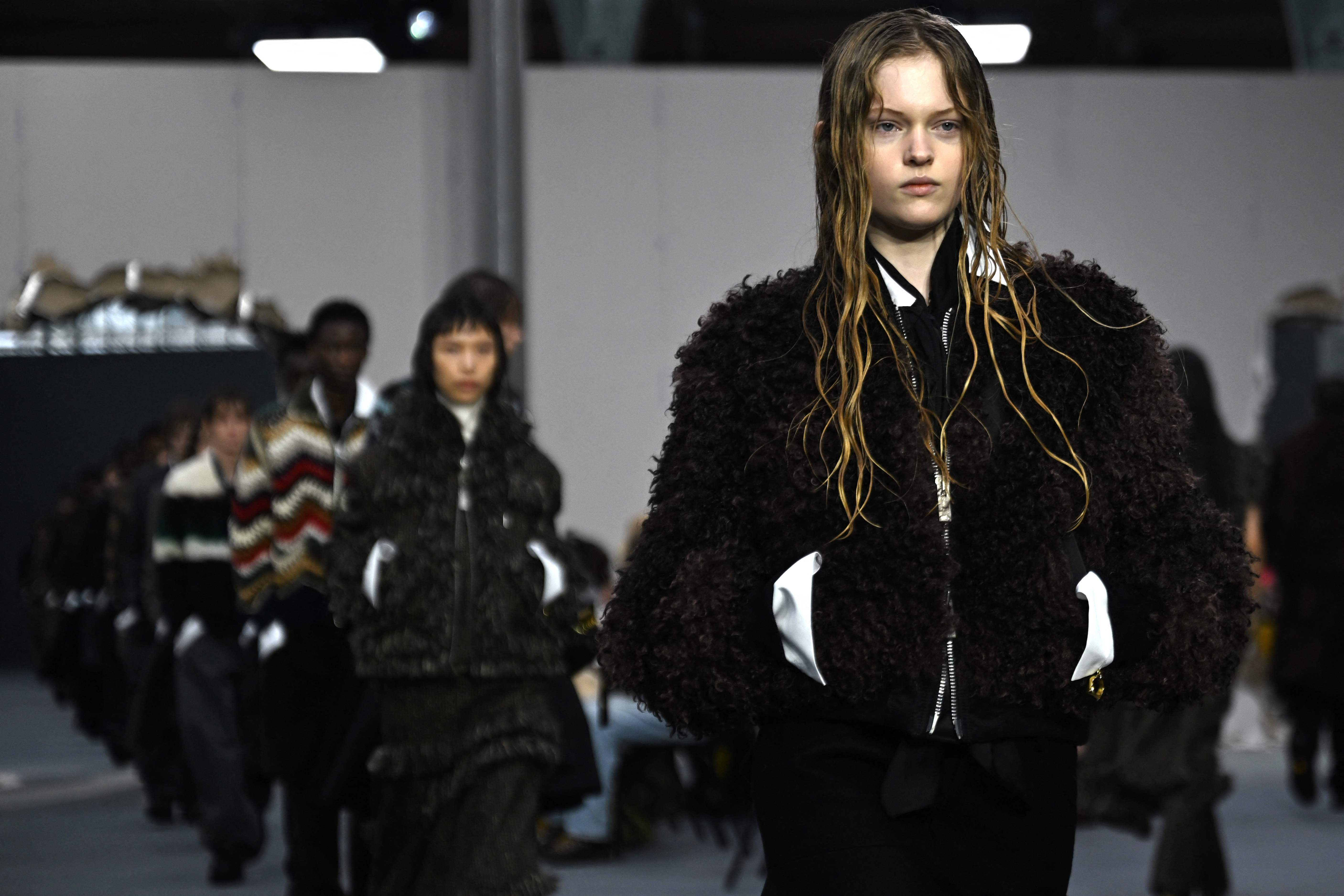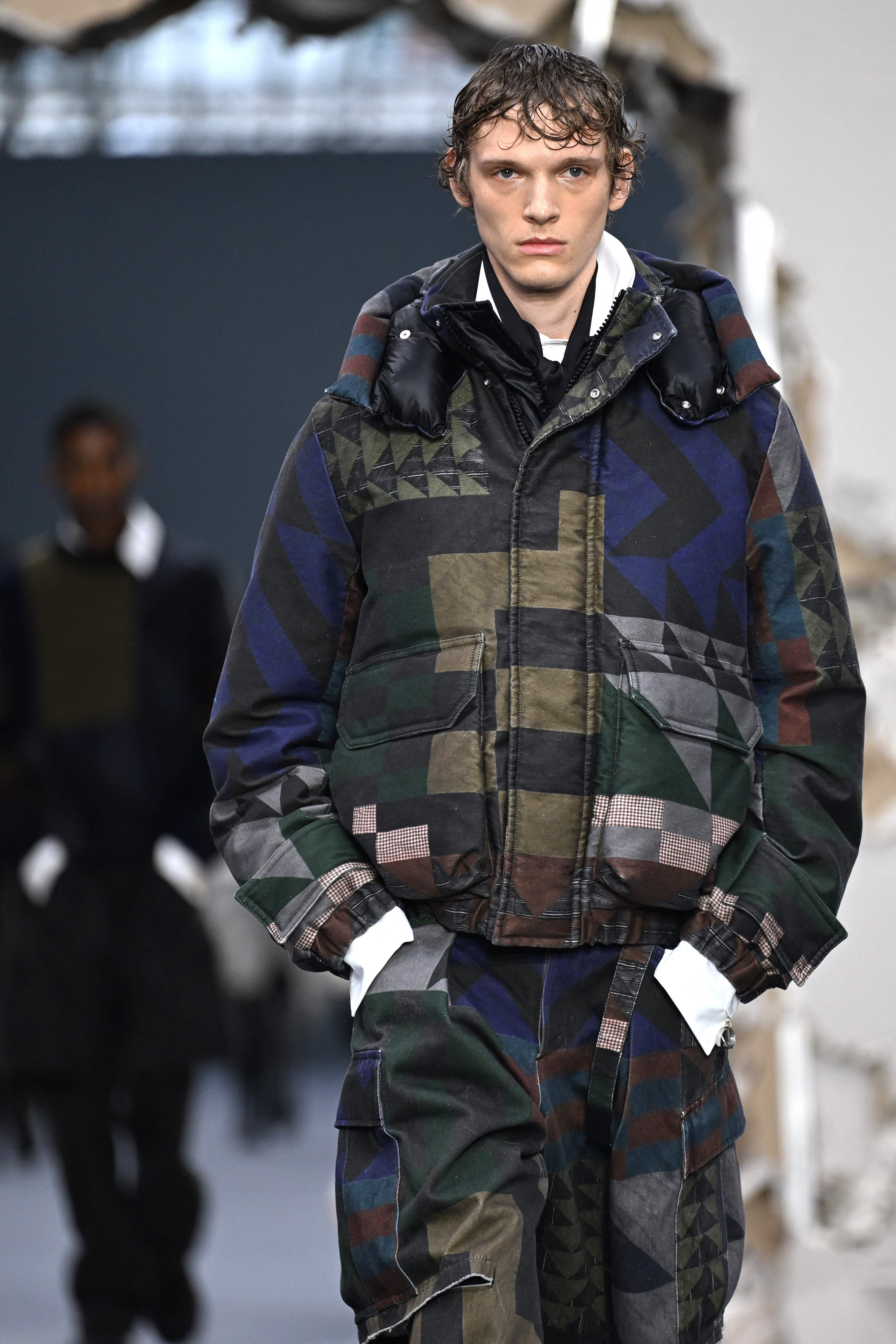 1月25日,模特在法国巴黎男装周上展示Sacai品牌2026/2027秋冬新品。 新华社/法新
