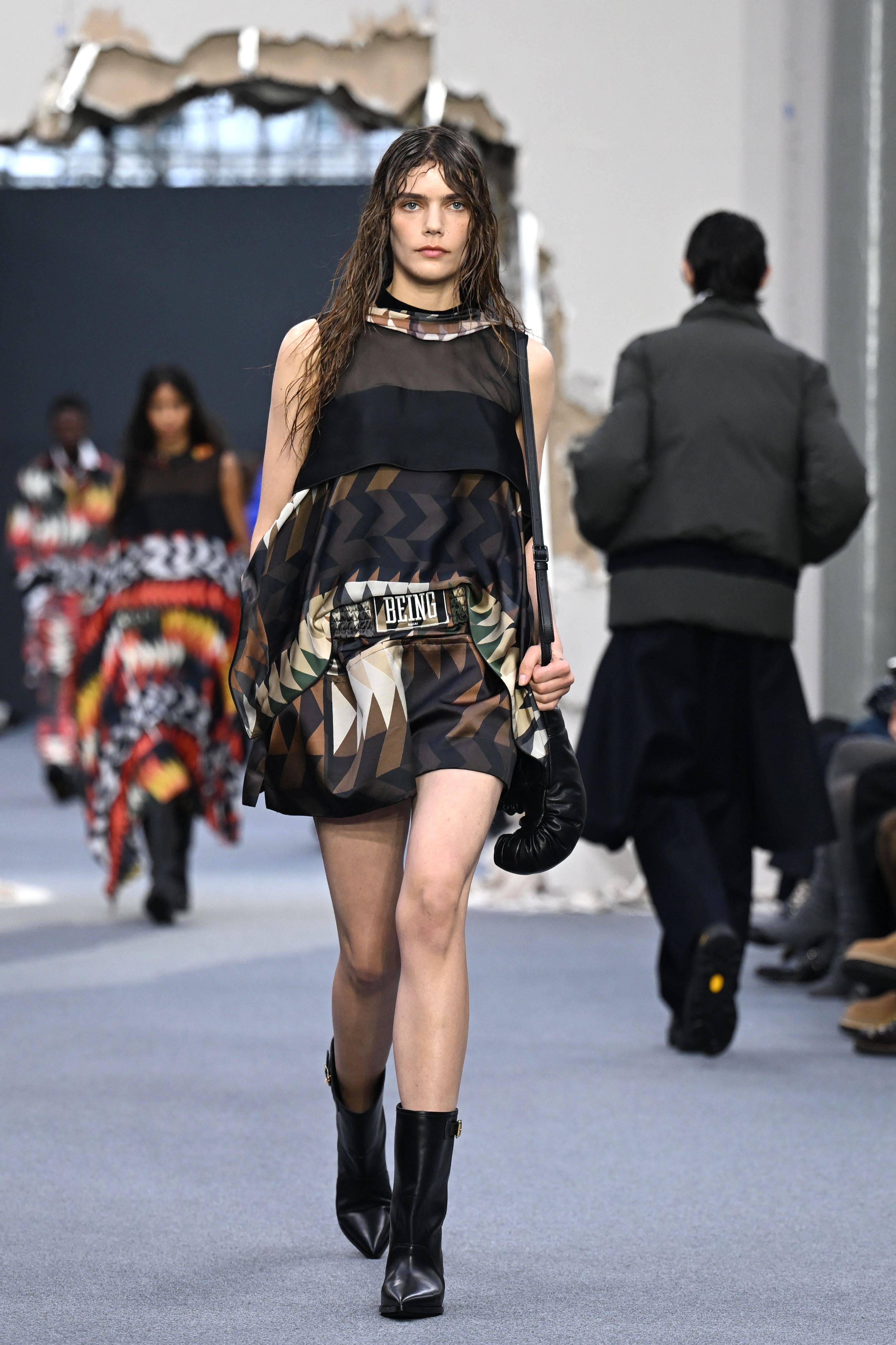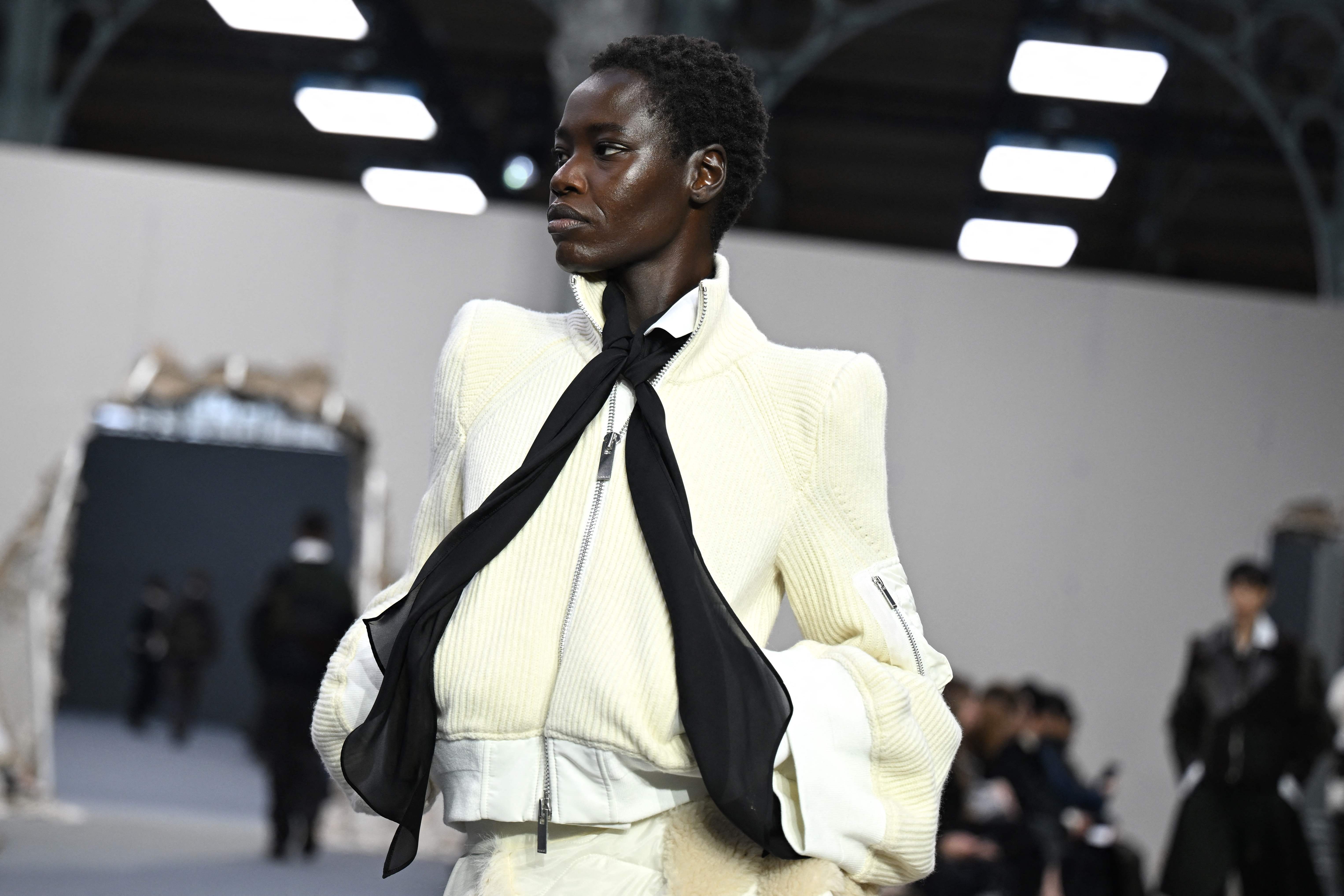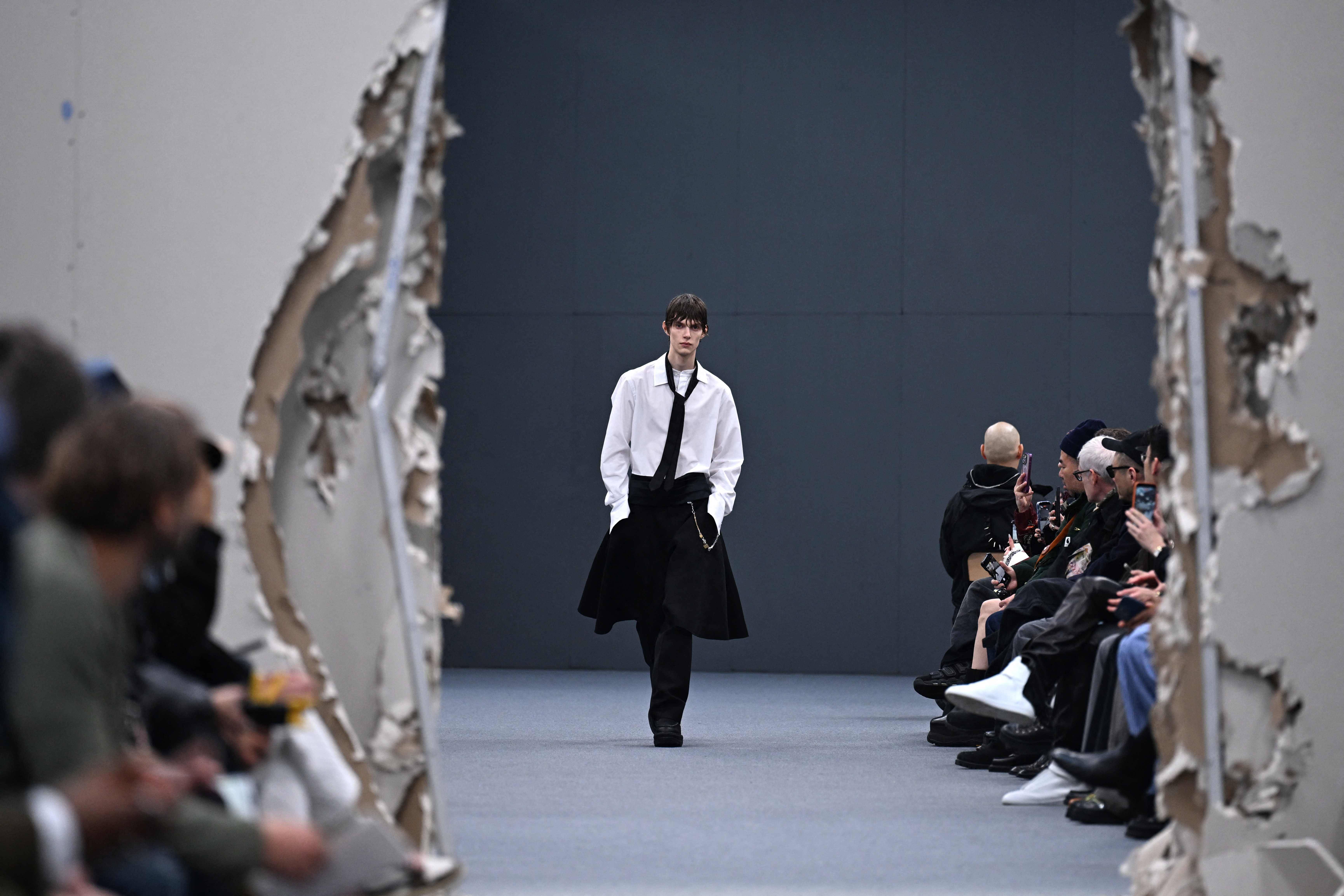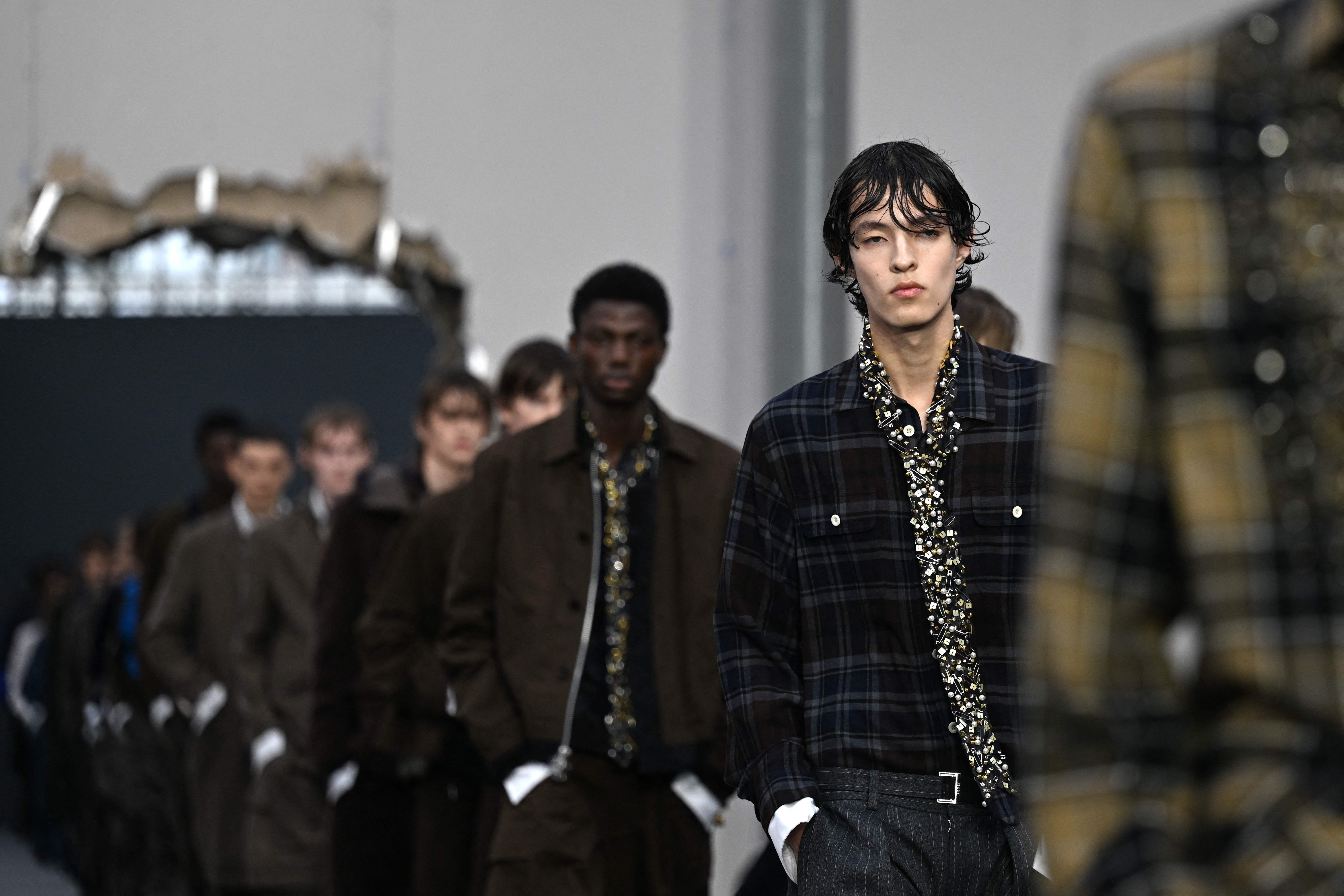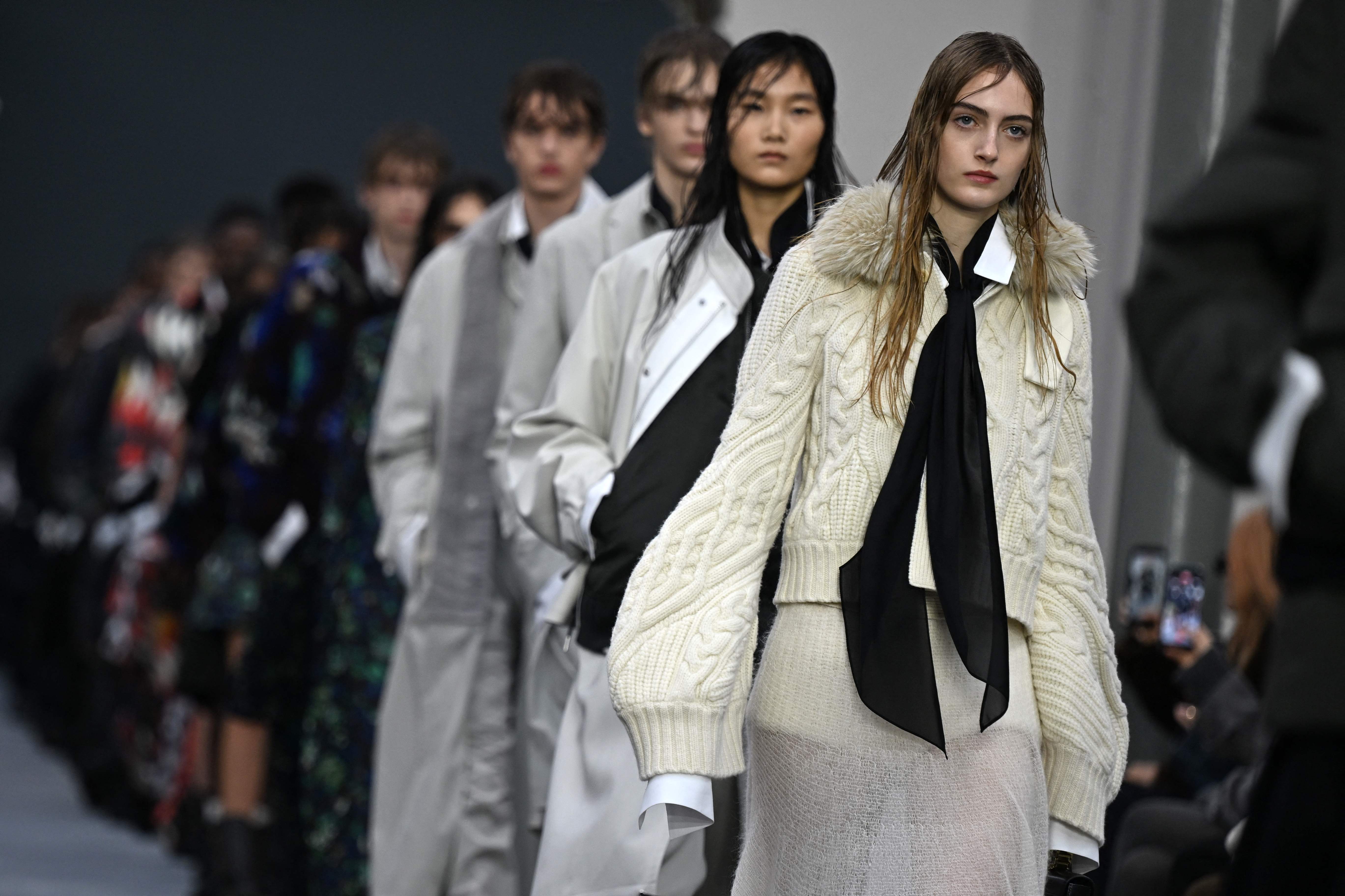 1月25日,模特在法国巴黎男装周上展示Sacai品牌2026/2027秋冬新品。 新华社/法新