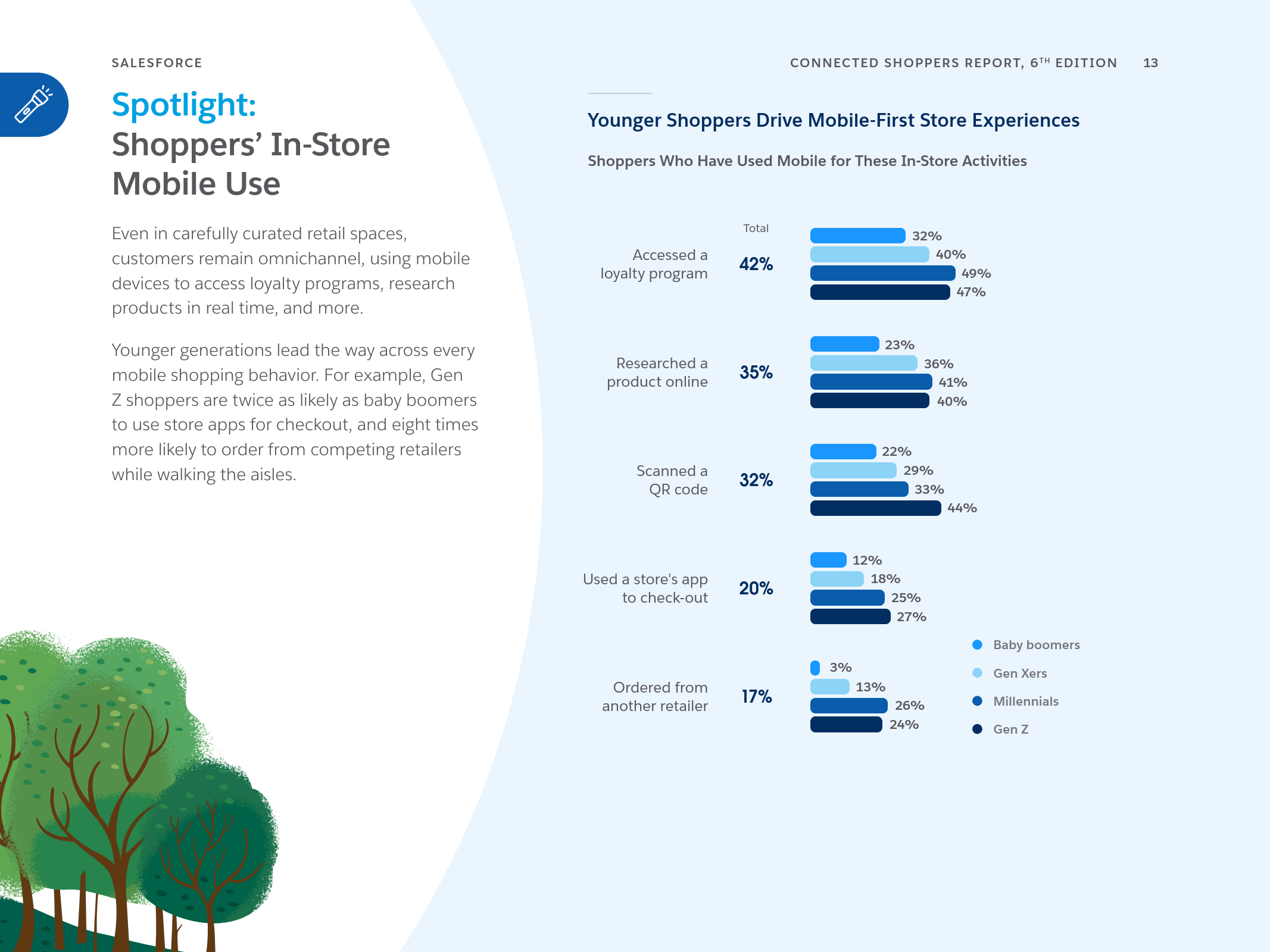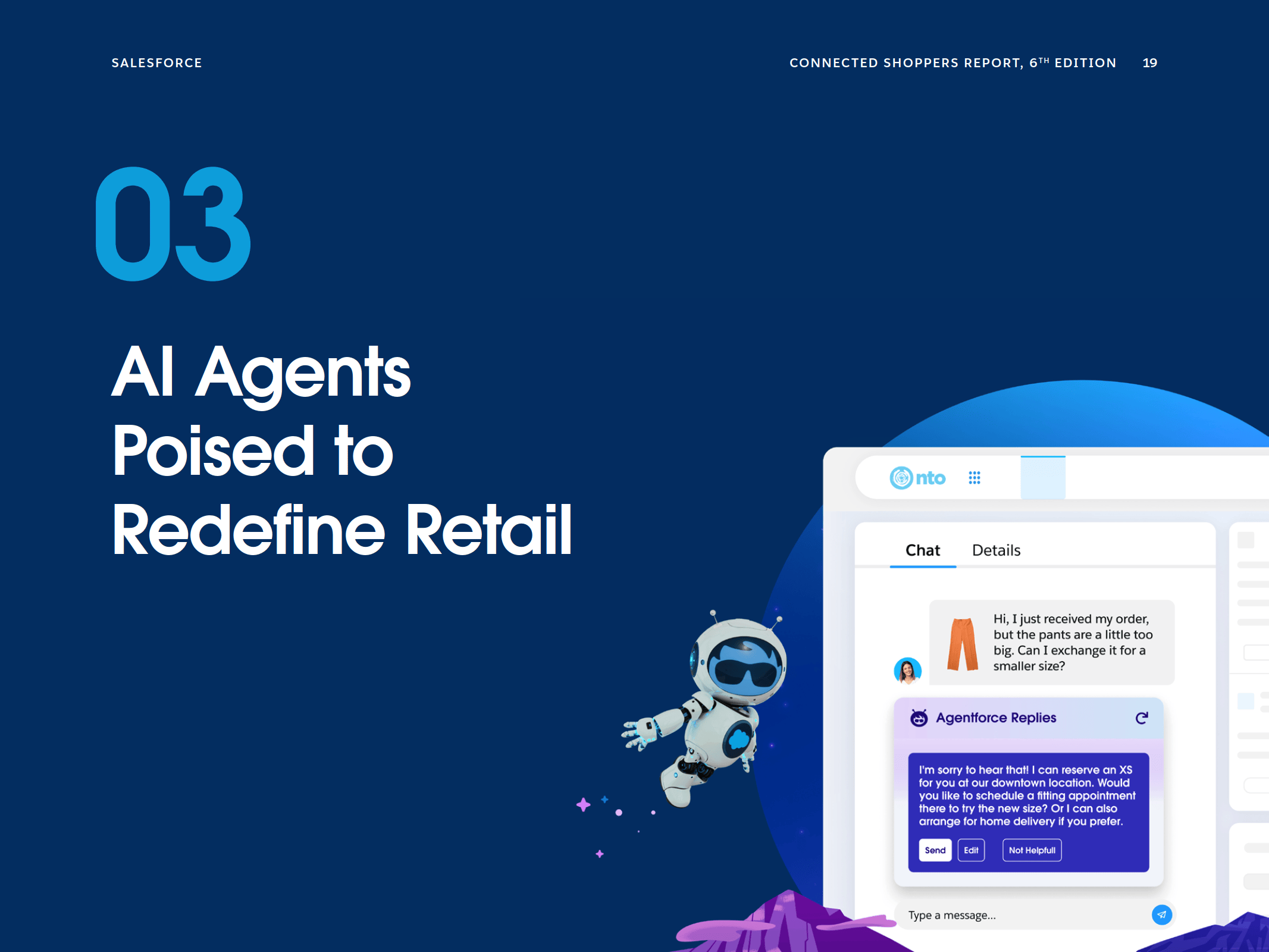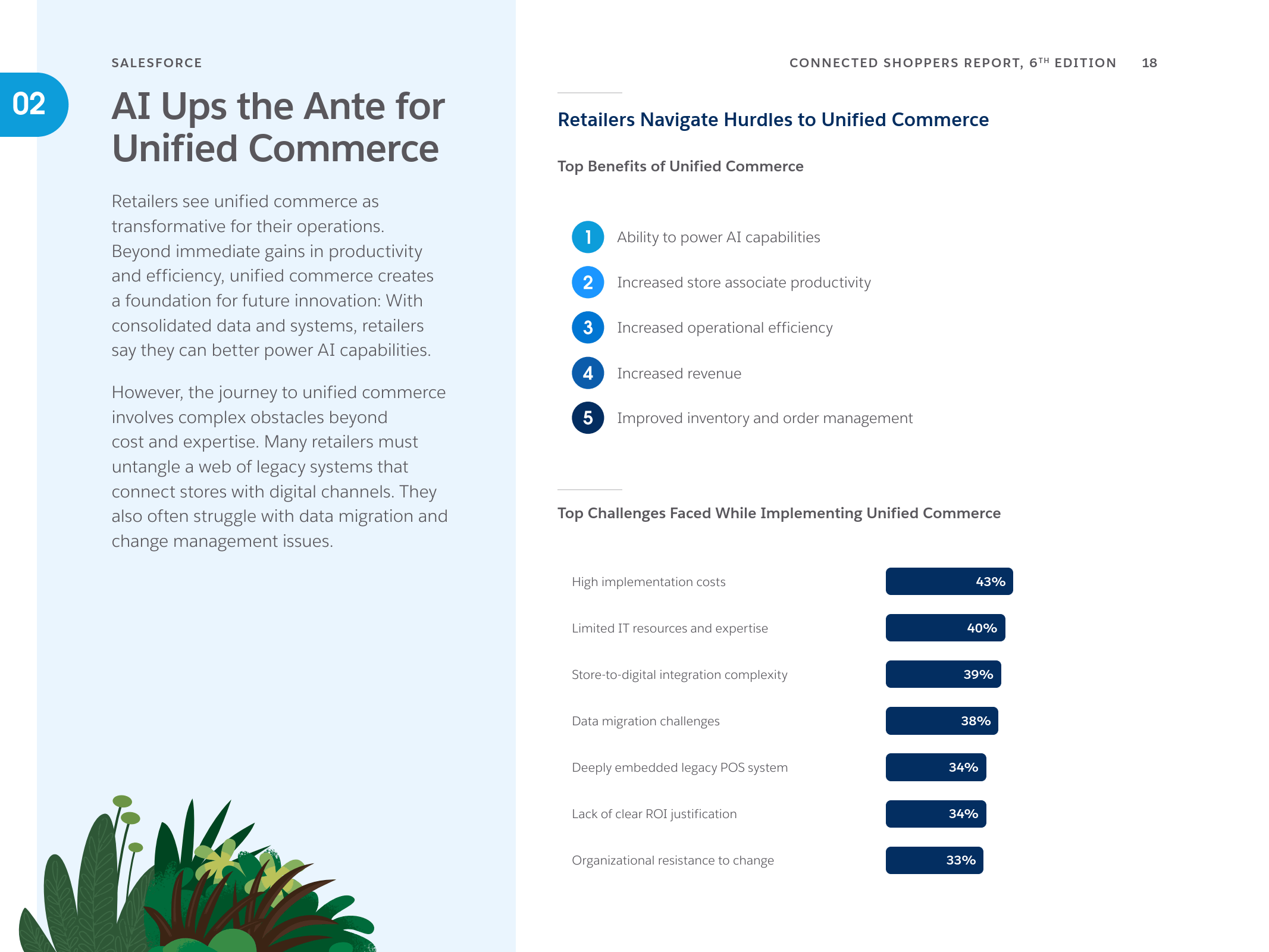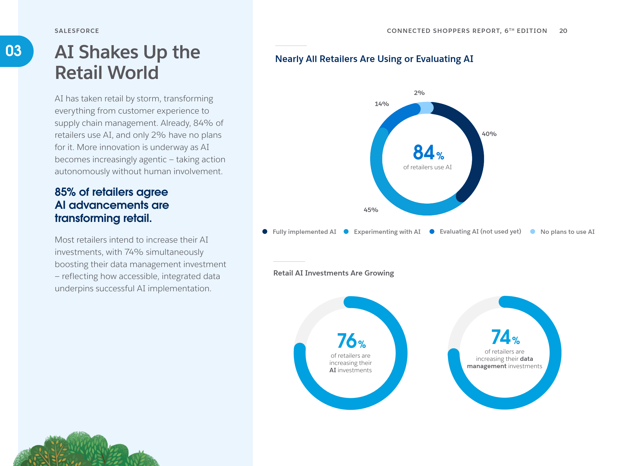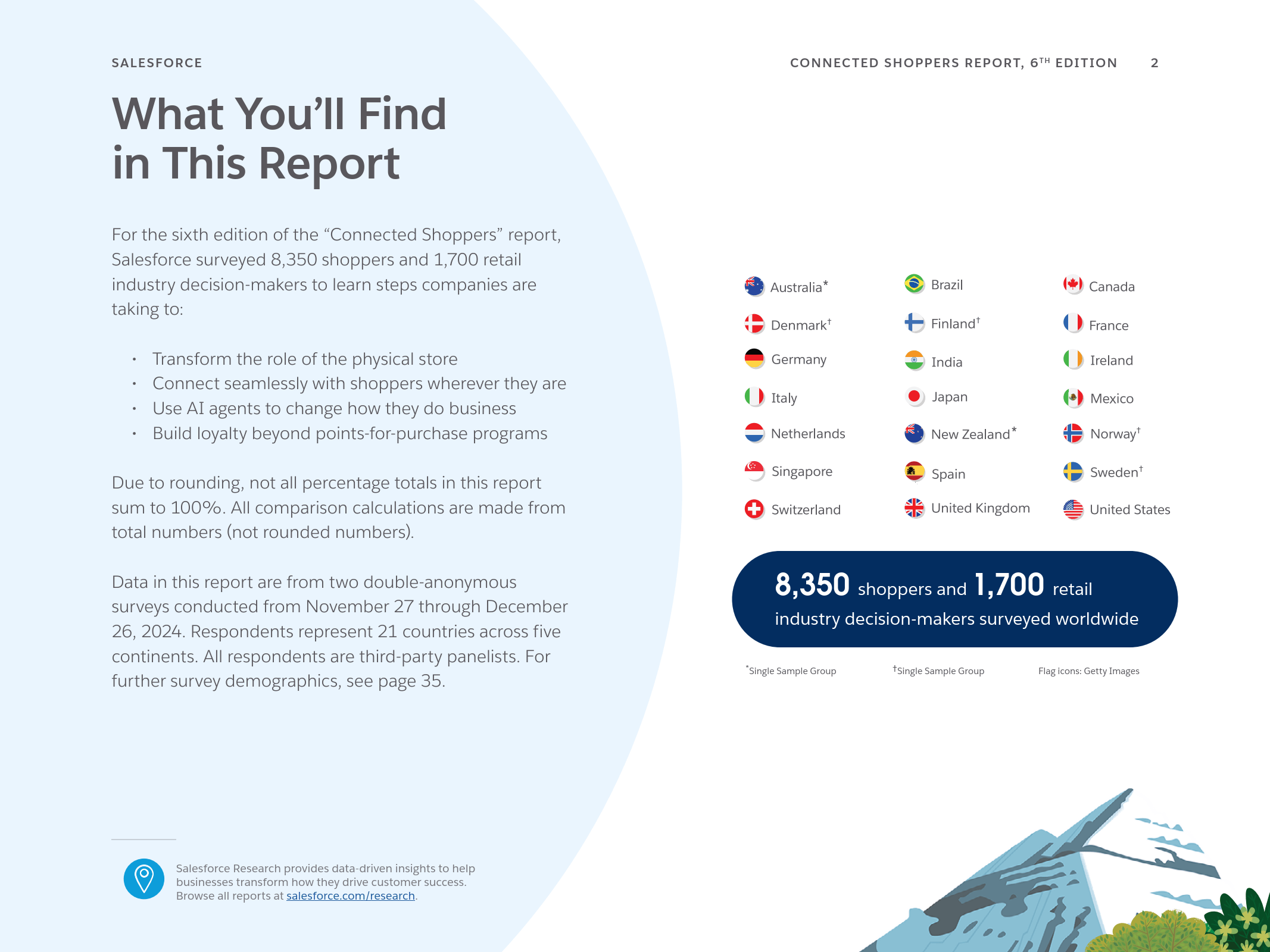 Salesforce 发布的第六版《Connected Shoppers Report》基于全球 8,350 名购物者和 1,700 名零售行业决策者的调研,揭示了智能零售时代的四大核心趋势,为行业数字化转型提供了关键洞察。