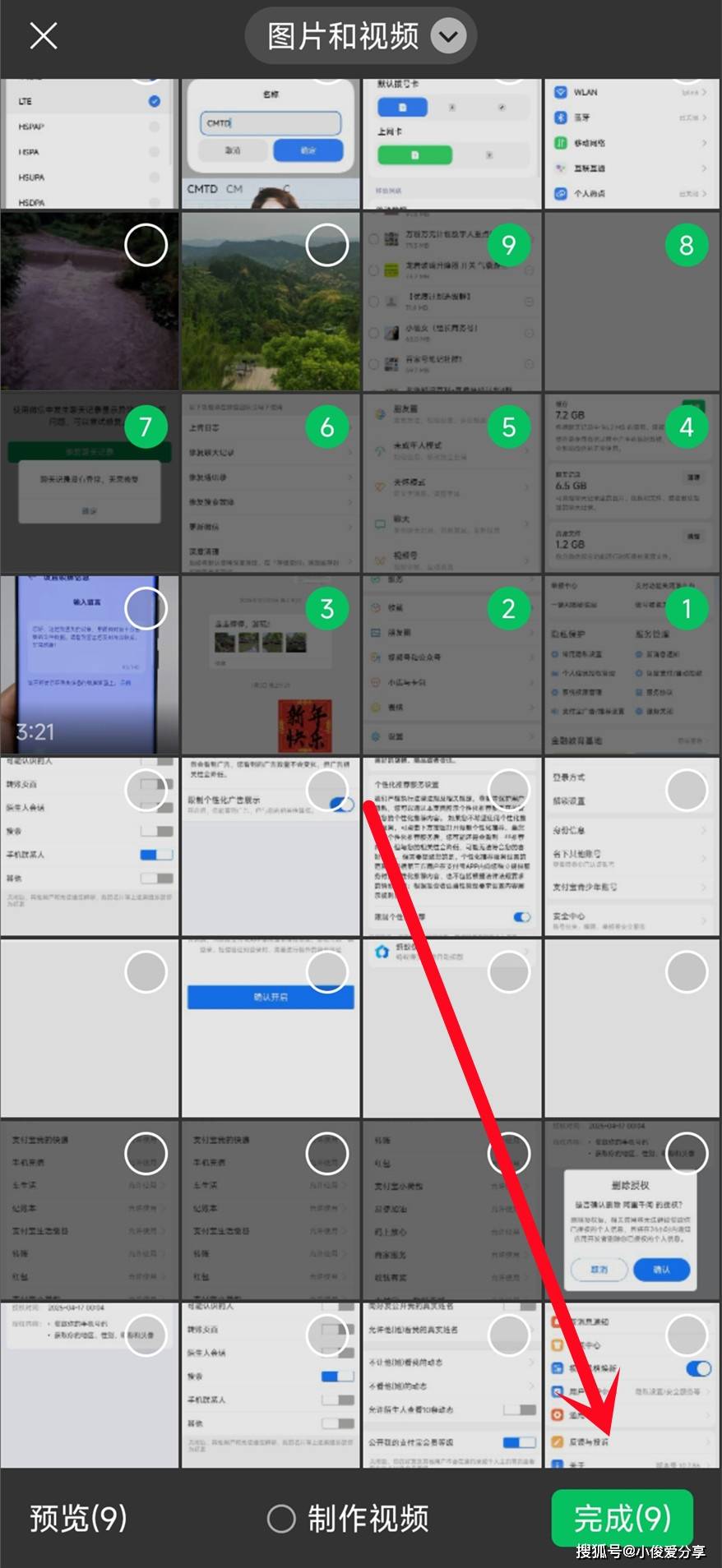 来,接下来,咱们从相册里面选择需要保存的照片或者视频,记住了,一次只能选择9张,不然就会被转成视频了,所以如果你照片比较多,一次选择不了那么多,那咱们就多试几次,毕竟都是无限存放的,咱们多保存几次怕啥,你说是不是这个理!